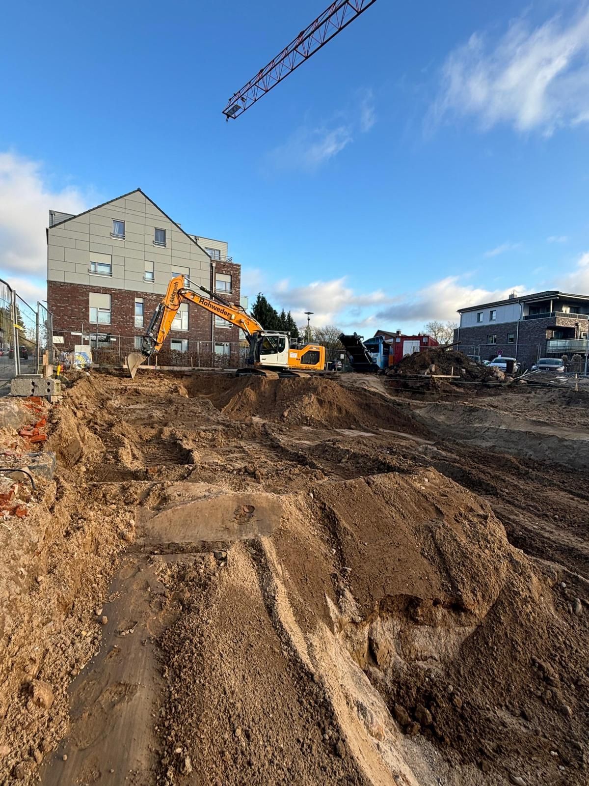 Nach den erfolgten Abbrucharbeiten in der Königstraße in Bad Oldesloe wurde die Baugrube für zwei unterkellerte Mehrfamilienhäuser ausgehoben und fertiggestellt.